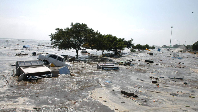 *tsunami:tremblement de terre sous marin entraînant des glissements de terrains et des inondations.